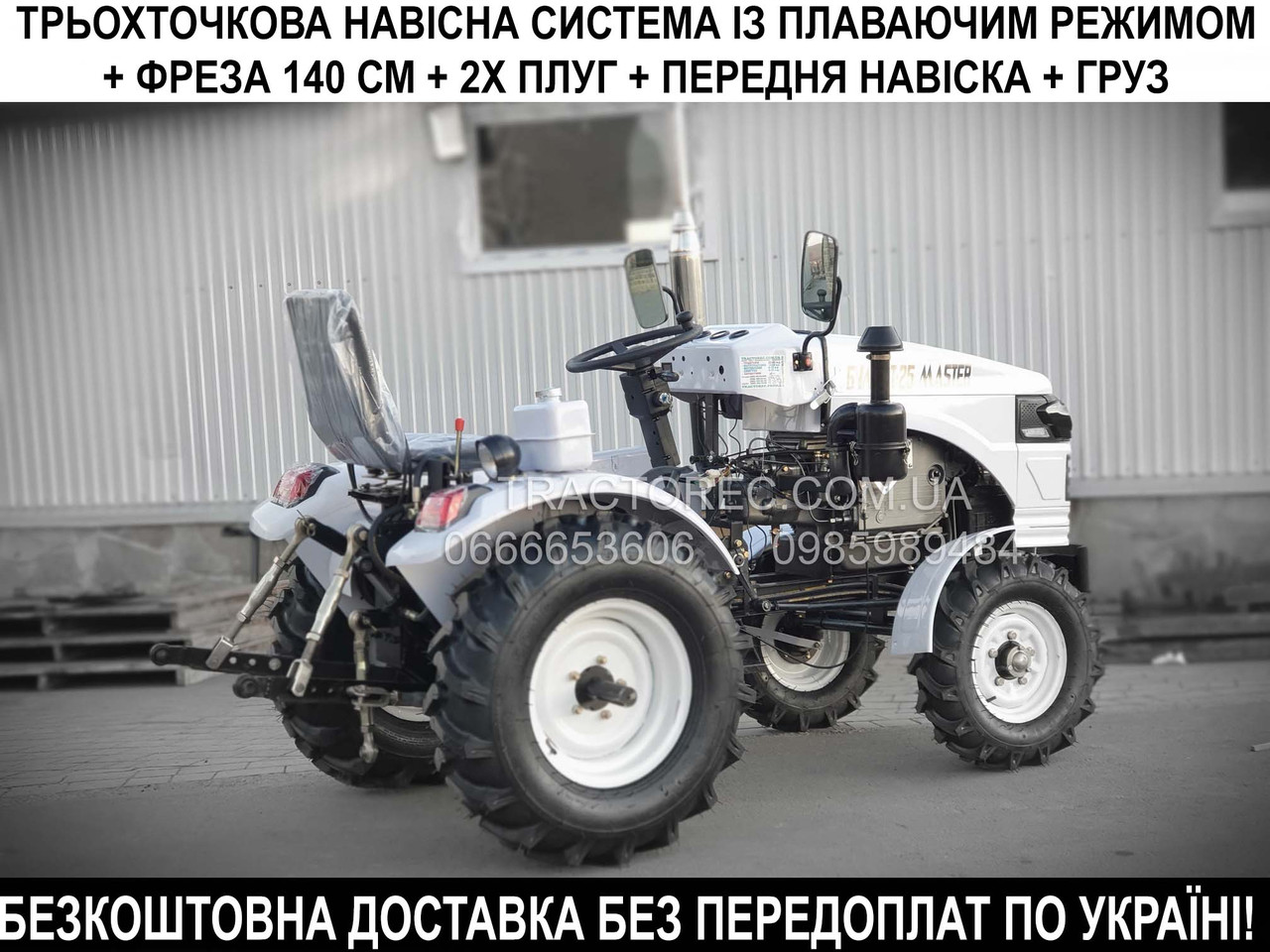Мототрактор Булат Т25 МАЙСТЕР 3Т з триточковою навісною системою, двокорпусним плугом, фрезою, ЗІП, Широкі шини, новий дизайн!